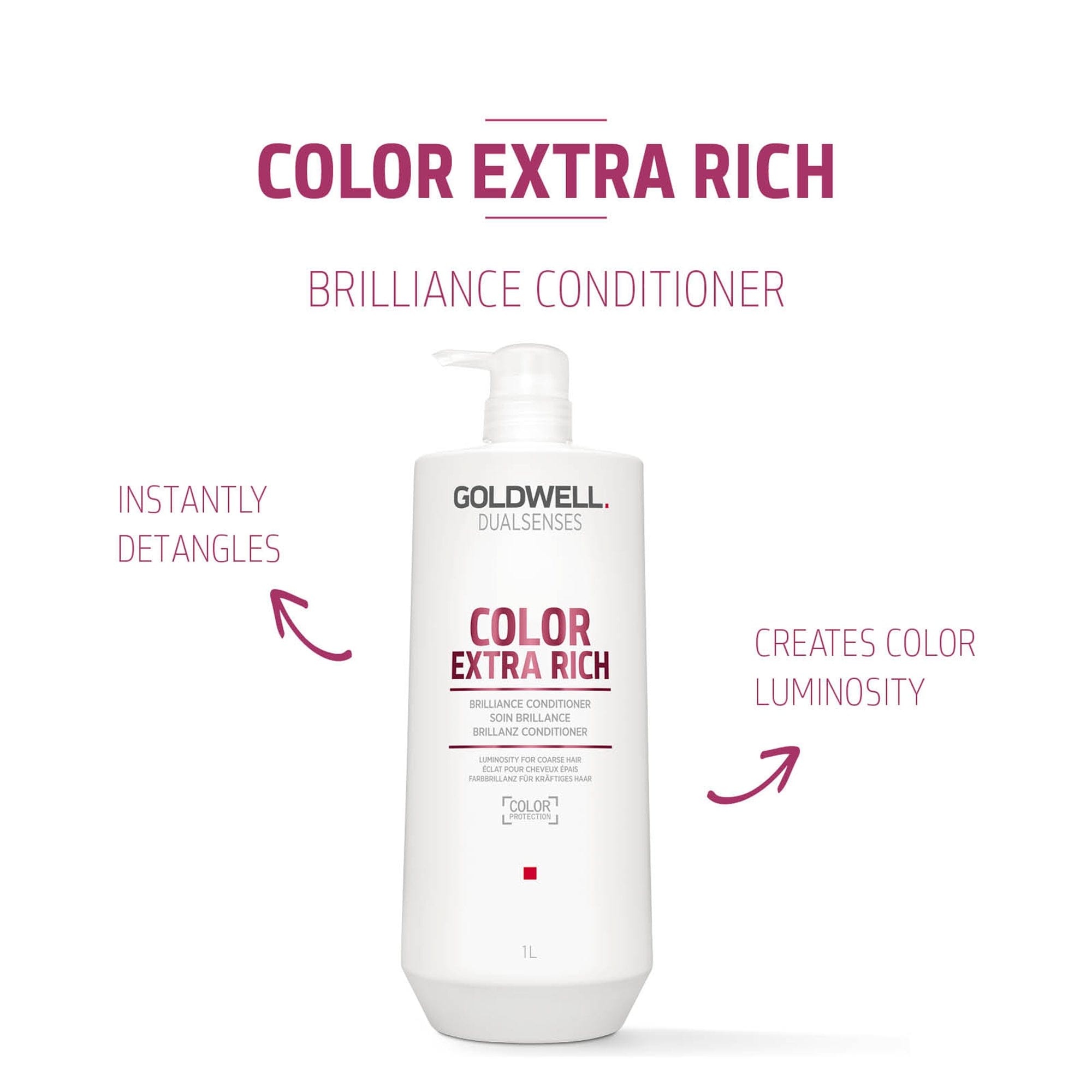 Goldwell Dualsenses Color Extra Rich Brilliance Conditioner 1000ml provides instant detangling and color luminosity for both colored and non-colored coarse hair.