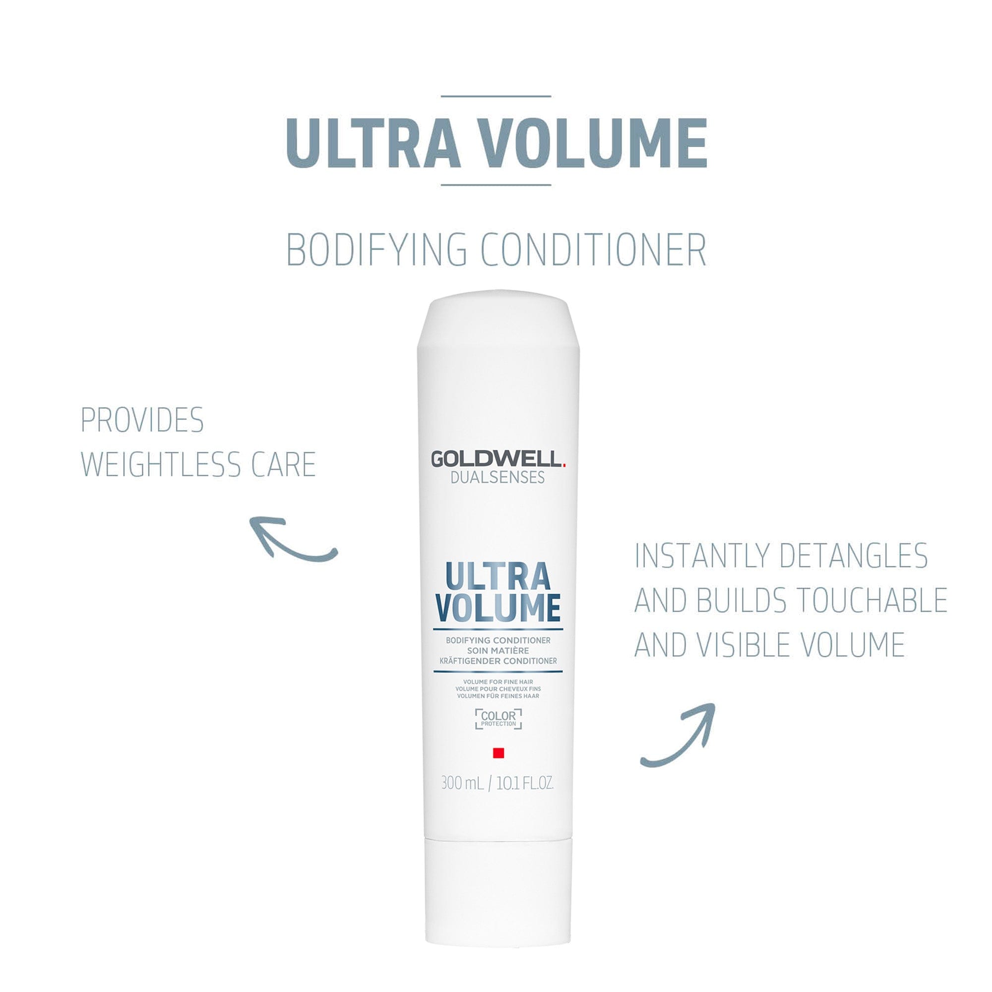 For best results, use with Goldwell Dualsenses Ultra Volume Bodifying Shampoo.