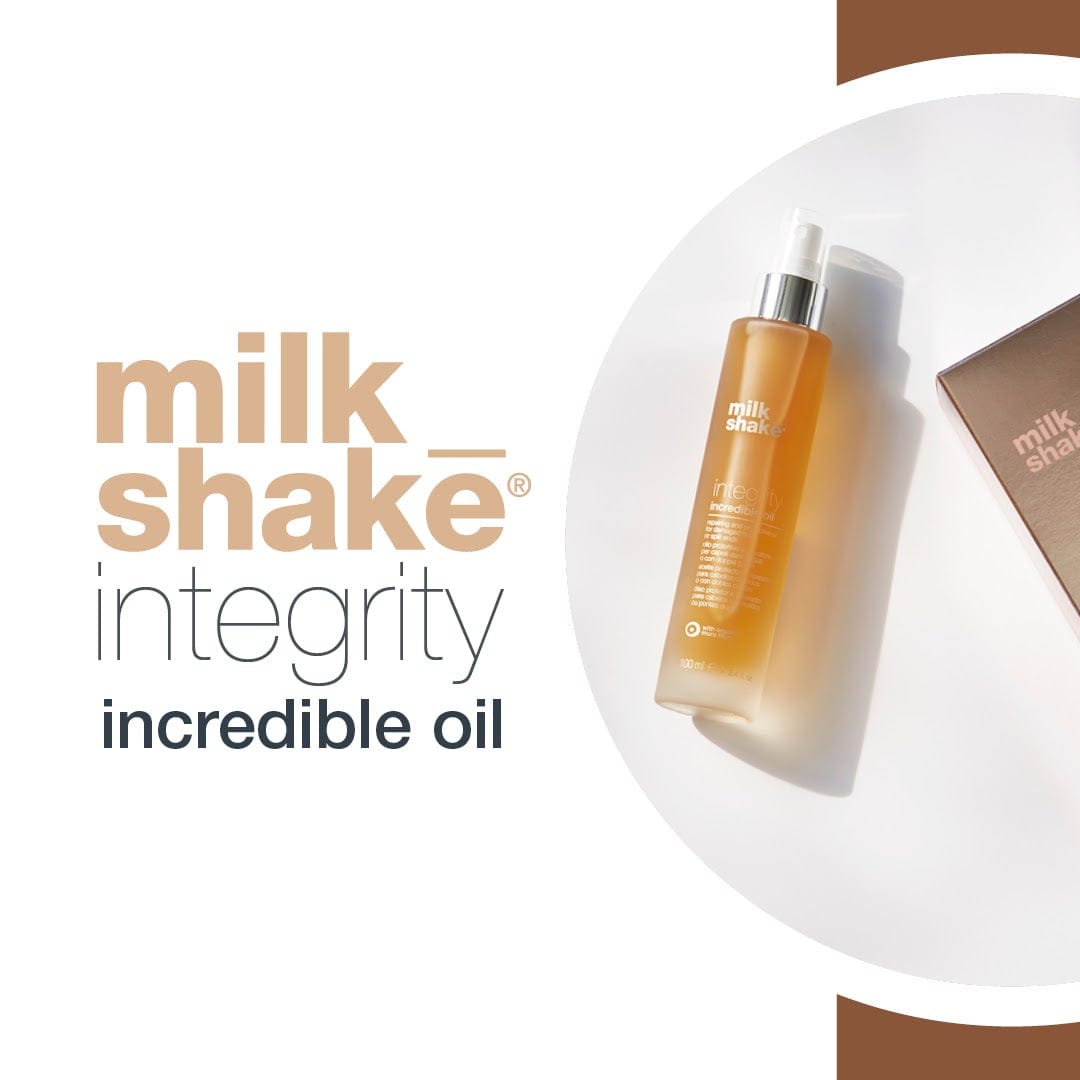 milk_shake Integrity Incredible Oil 50ml is an intensive no rinse treatment formulated to counteract and prevent split ends while protecting the hair from heat and other stress factors that damage the hair.